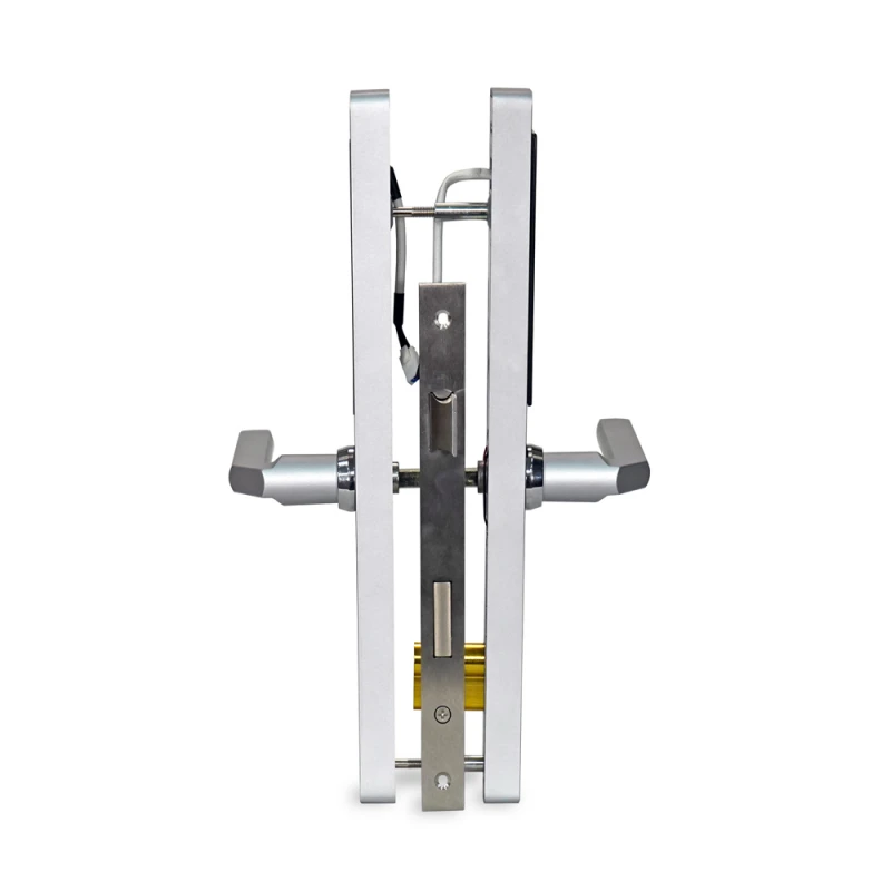 Біометричний замок Trinix TRL-5105BTF використовується в системах контролю доступу для обмеження доступу в контрольовані приміщення по відбитку пальця, безконтактній RFID карті або за допомогою введення коду. Ідеально підійде для встановлення на обмеження доступу до кабінетів, офісів, серверних, приміщень для зберігання чогось – скрізь, де потрібна надійність. Біометричний сканер відбитків забезпечує високу точність автентифікації відвідувача. Високий захист від злому замку завдяки спеціальному дизайну ручки.Також замок відправляє тривожне сповіщення при спробі злому. Встановлюється готові металеві, дерев'яні двері. Автономне живлення від 4x АА батарейки. При недостатньому заряді замок видає сигнал для подальшої заміни елементів живлення. Дана модель підтримує роботу з Bluetooth з додатком TTLock, TTHotel.Основні характеристики:– Підтримка до 200 користувачів– Відкриття ключем: Так– Відкриття: відбиток, код, картка, програма– Підтримка Bluetooth: Є- Матеріал корпусу: Алюмінієвий сплав– Живлення: 4*АА батарейки- Товщина дверей: 35-90 мм- Додаток для роботи із замком: TTLock, TTHotel.