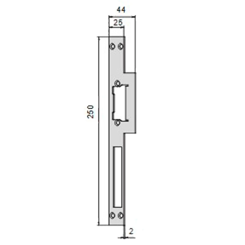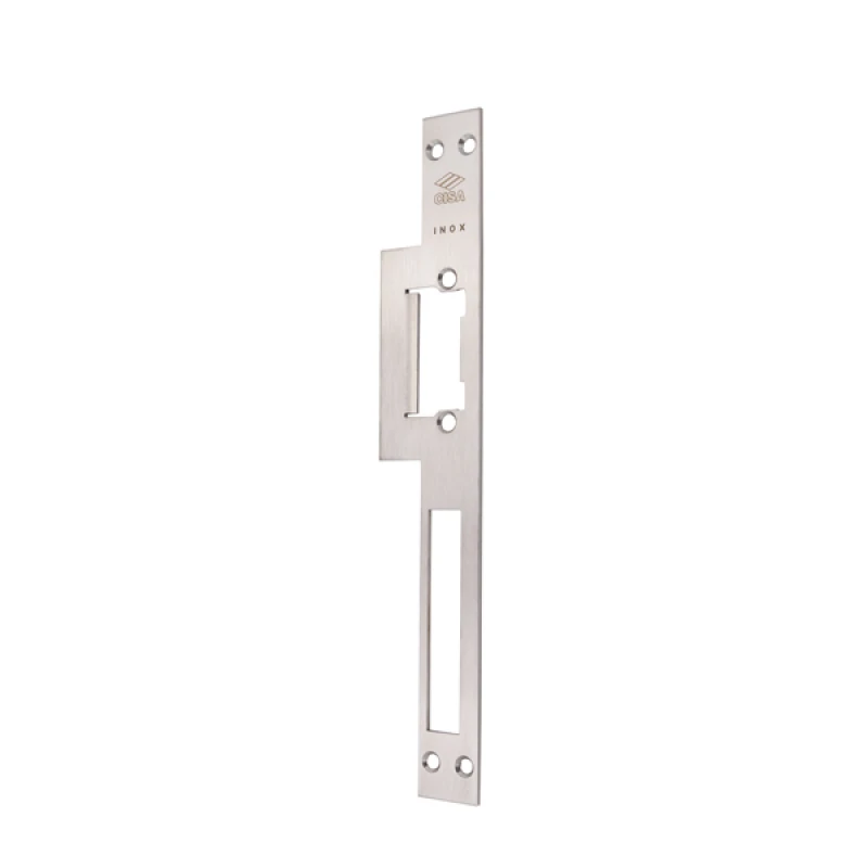 CISA 05002-22 - це зворотня планка, яка призначена для встановлення електромеханічних защіпок у дерев’яні та металеві рами прямих дверей та дверей з притвором. Сумісна з електромеханічними защіпками CISA 15100. З отвором для основного ригеля замка.